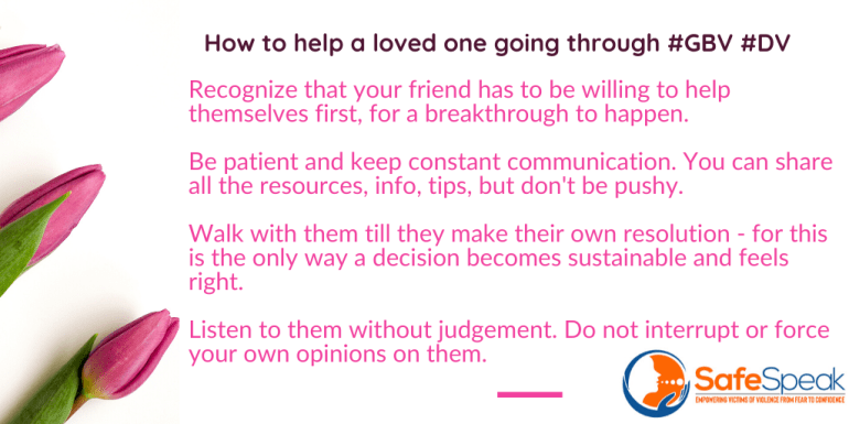 Here are some ways you can support a friend or family member experiencing GBV